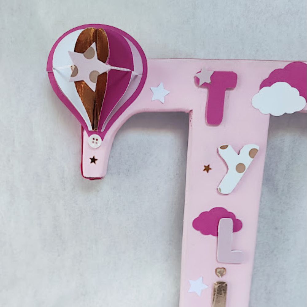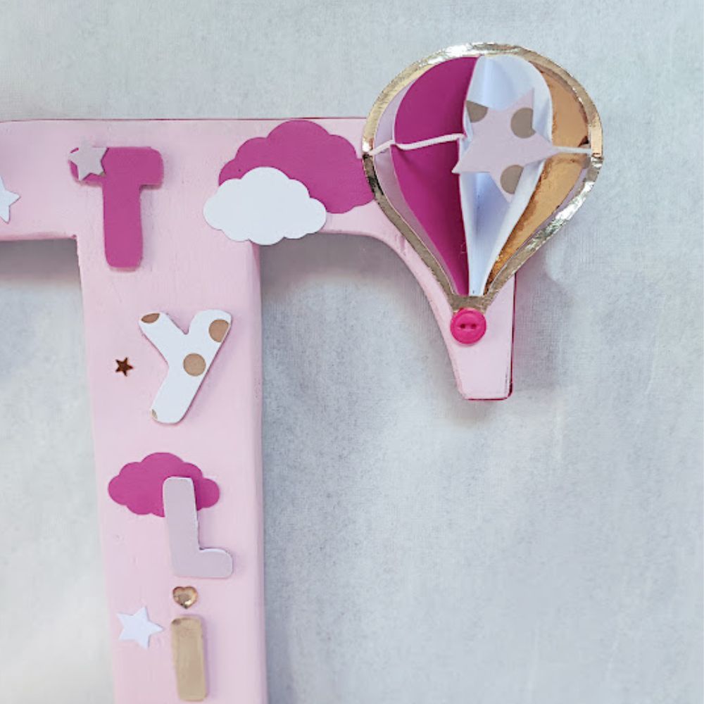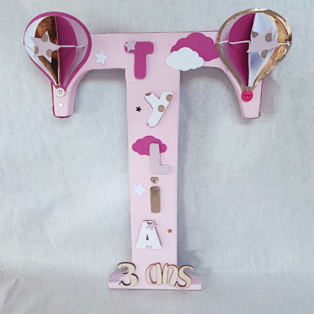 Lettre en bois thème montgolfière. Création réalisée à la main décoration unique et personnalisée.